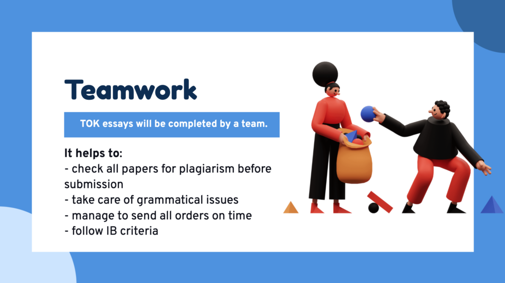 So, if you are finding it hard to write your TOK essay, then you can buy TOK essays from us. We will help you with all what you need help in. If you have something specific in mind to write about, or any example that you want to put in, don’t hesitate to share with us. In such a way, we will share your idea with the team of writers who will then help with this in the best of ways. All you need to do is get in touch with us and we will help you get the best work done.
